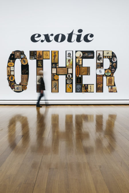 Installation view of 'Tony Albert: Visible' at the Queensland Art Gllery, featuring exotic OTHER (2009/2018). Photography: Joe Ruckli, QAGOMA.