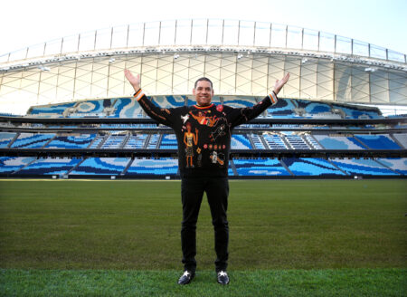 Two Worlds Colliding: Water & Land Sydney Football Stadium, 2022 (artist render) Commissioned by Infrastructure NSW and curated by Cultural Capital