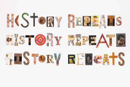 History Repeats, 2022 found vintage kitsch objects and timber 120cm x 300cm